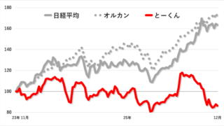 今月の損益はこちらです。とーくん:-6.7%日経平均:+0.2%オルカン:+2.7%入金した200万円は評価額 1,721,909円となり、年初比-10.8%、投資比-13.9%となりました。銘柄名株数現在株価取得株価損益額損益率前月比プレ...