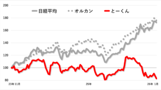 今月の損益はこちらです。とーくん:-3.9%日経平均:+5.9%オルカン:+0.9%入金した200万円は評価額 1,655,044円となり、年初比-3.9%、投資比-17.2%となりました。銘柄名株数現在株価取得株価損益額損益率前月比プレミ...