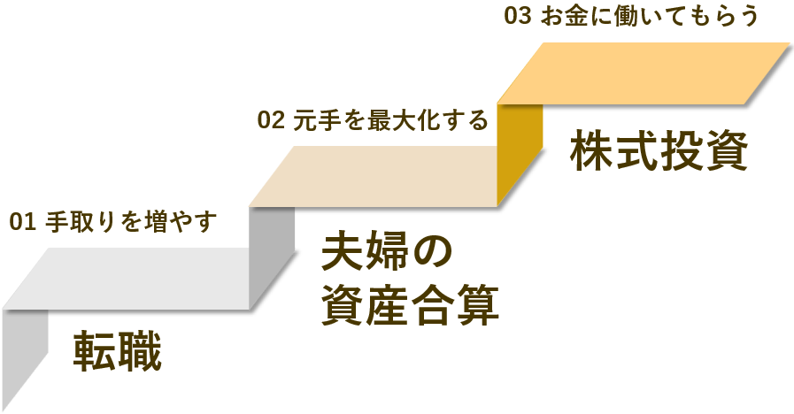 夫婦の貯蓄と収入を合わせ、直近で必要な資産のみ現金として残し、残りはできるだけ資産運用に回して元手を最大化しました。